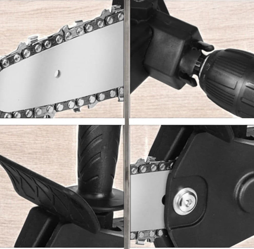 La Mini Tronçonneuse EasyCutChain™ transforme ta perceuse en un outil puissant et pratique. Idéale pour les petits travaux de coupe et d’élagage, elle rend le bricolage plus simple et plus rapide.